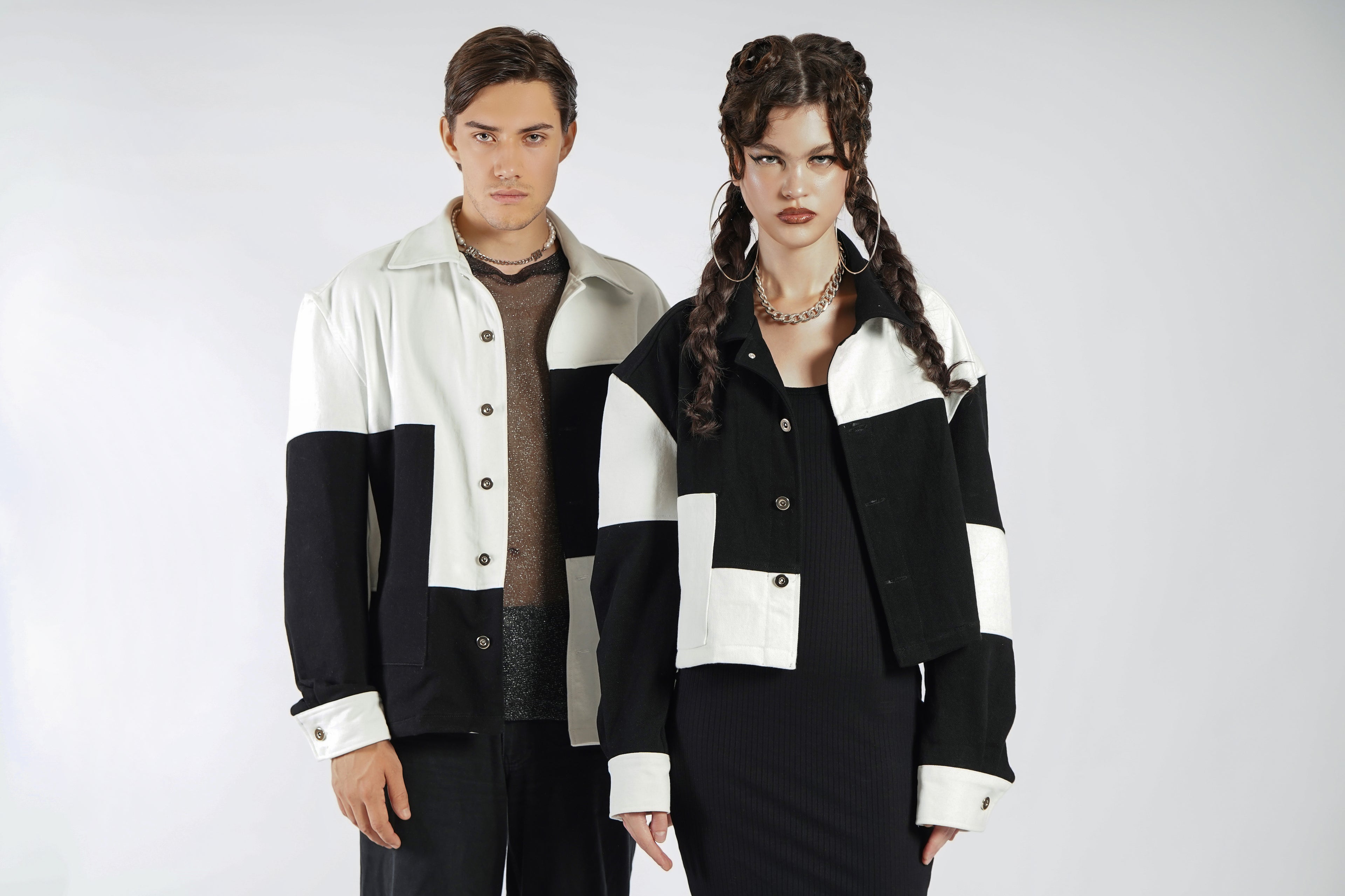 OCWA ATLAS OVERSIZED COLORBLOCK BLACK WHITE DENIM JACKET