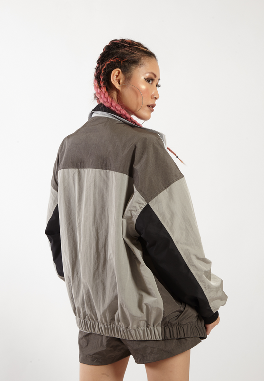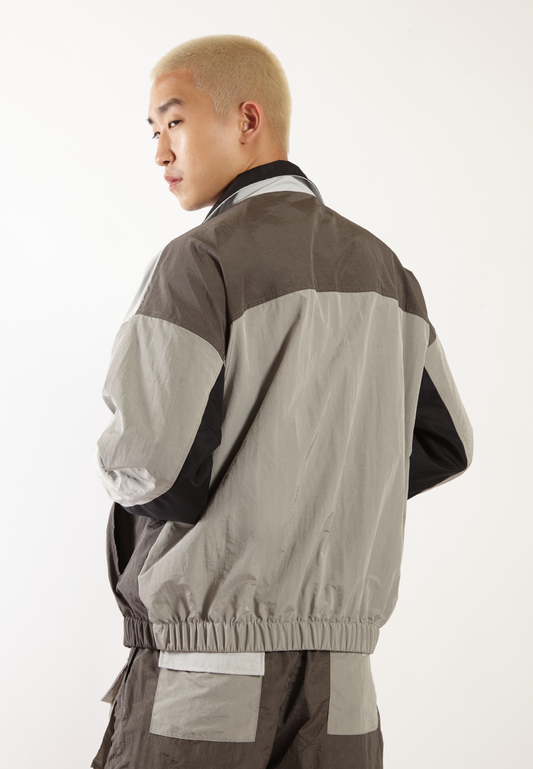 OCWA ROCKY COLORBLOCK MONOCHROME WATERPROOF SPORTY RUNNING JACKET GREY BLACK