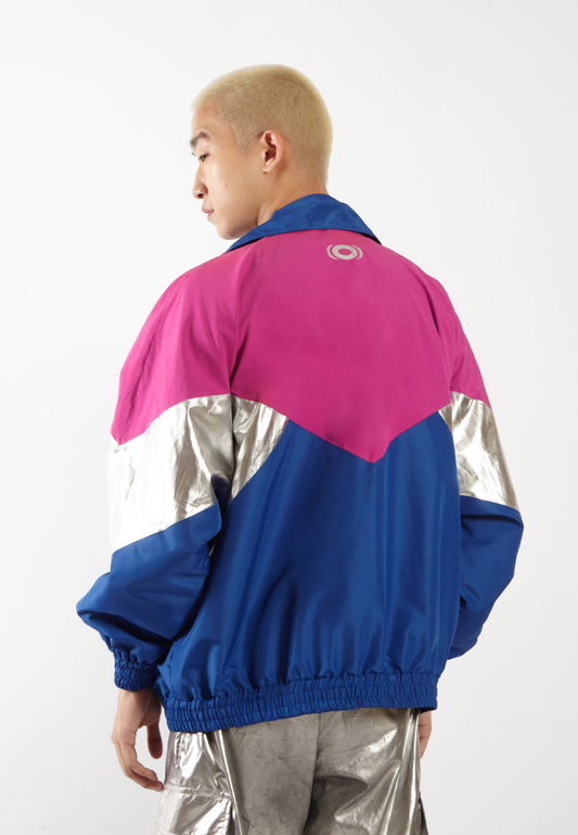 OCWA REN ELECTRIC BLUE PINK FUCHSIA SILVER OVERSIZED 80'S INSPIRED JACKET MEN