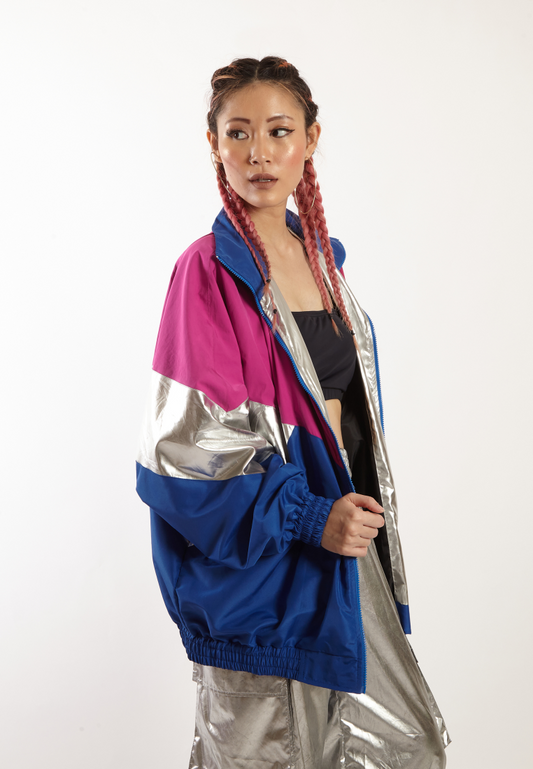 OCWA REN ELECTRIC BLUE PINK FUCHSIA SILVER OVERSIZED 80'S INSPIRED JACKET