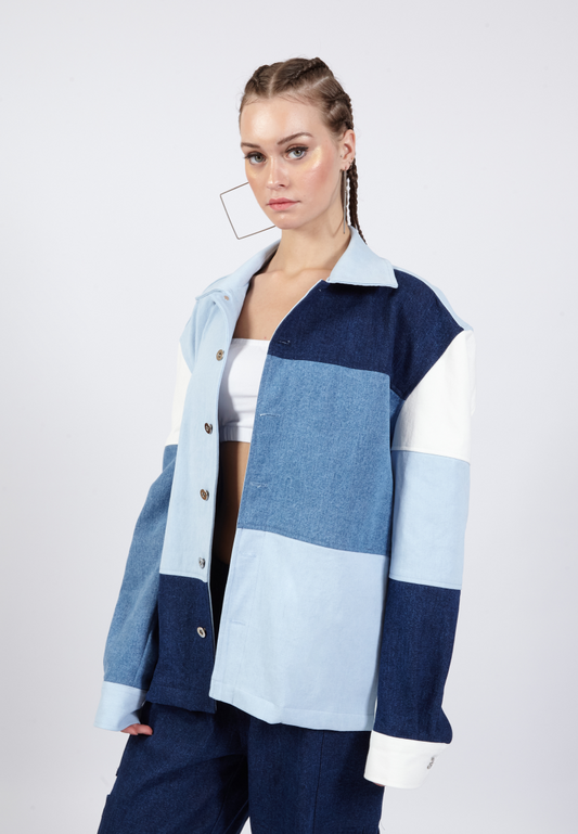 OCWA FRESCO OVERSIZED COLORBLOCK PATCH BLUE WHITE NAVY DENIM JACKET