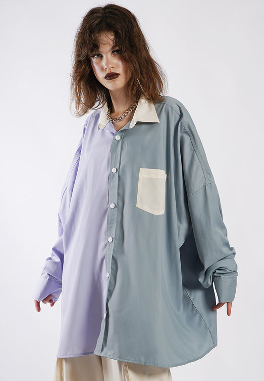 OCWA OVERSIZED ZA COLORBLOCK SHIRT CREAM SAGE LILAC