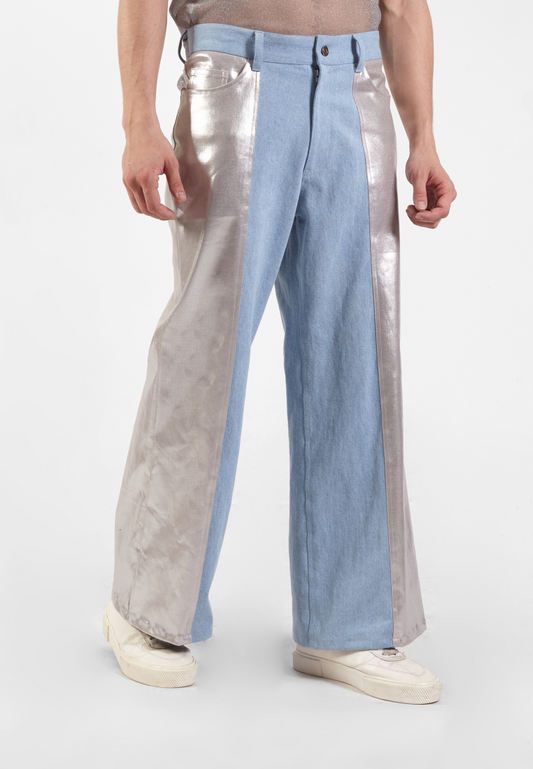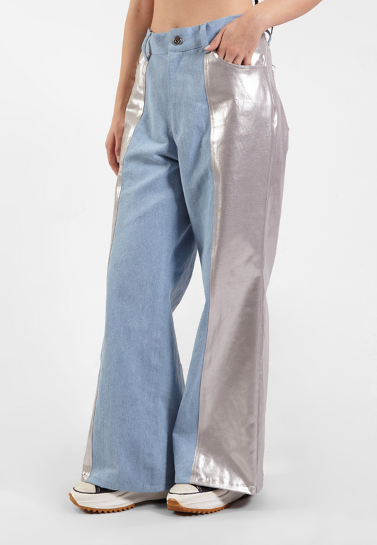 OCWA ROYCE WIDE LEG SILVER MIXED LIGHT BLUE JEANS PANTS