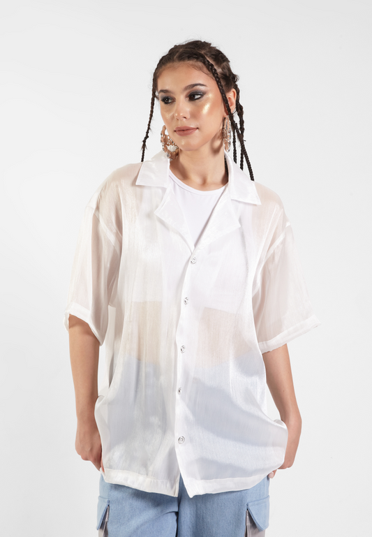 OCWA RUSLAN WHITE SHINY GLAM SHORT SLEEVE SHIRT WOMAN