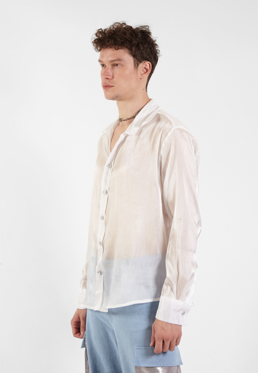 OCWA MARCO WHITE METALLIC SHINY GLAM LONG SLEEVE SHIRT