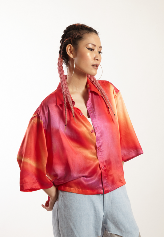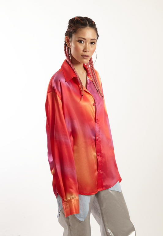 OCWA X NAELS MATES FANTASIA OVERSIZED LONG SLEEVE SHIRT ORANGE PINK RED