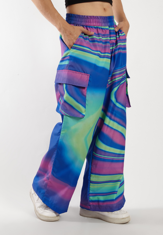 OCWA X NAELS MATES 80S INSPIRED WHIMSICAL BLUE GREEN PURPLE CARGO PANTS