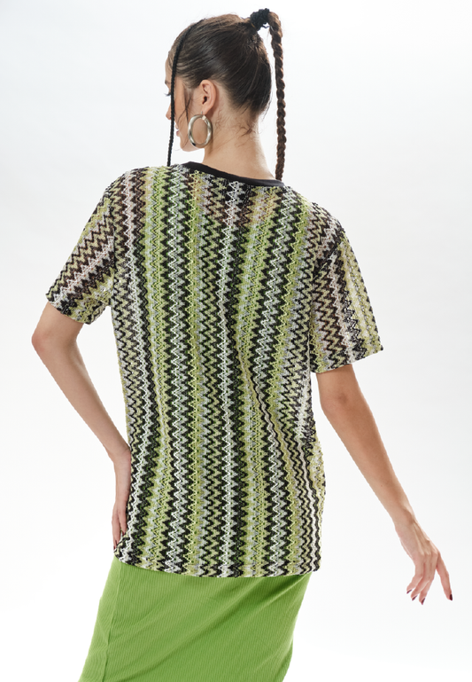 OCWA MILO KNIT SHEER TOP WHITE NEON GREEN BLACK