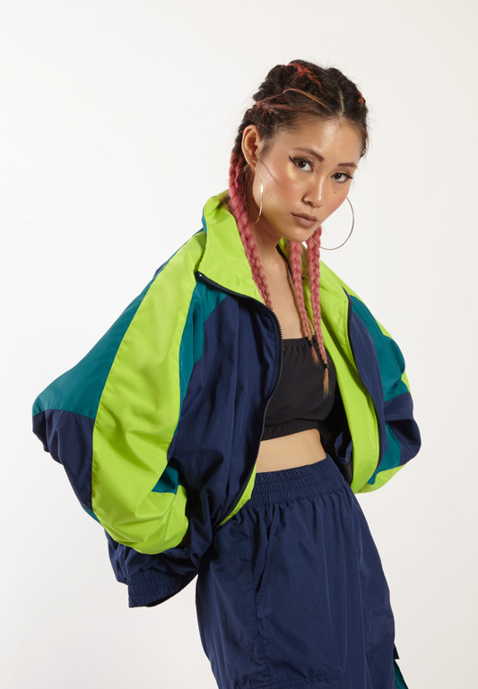 OCWA MIA NEON GREEN NAVY OVERSIZED 80'S INSPIRED JACKET