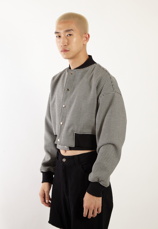 OCWA MAYER HOUNDSTOOTH CROP VARSITY JACKET