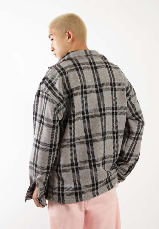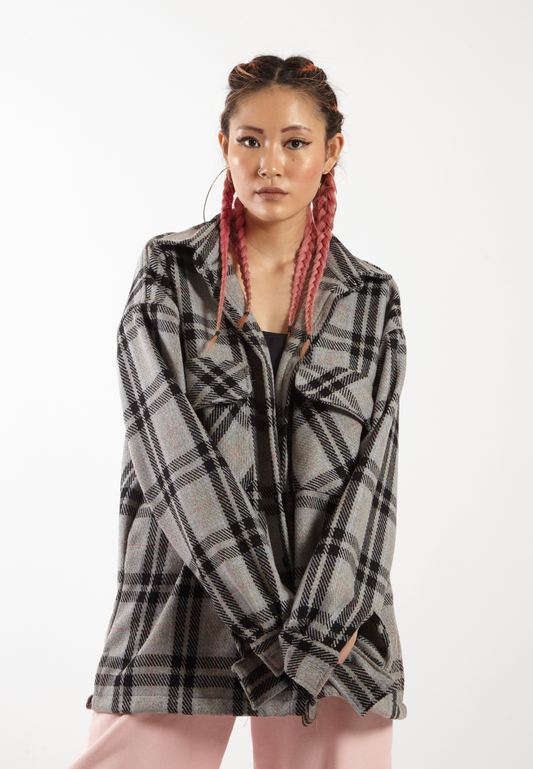 OCWA MAYER OVERSIZED TARTAN PLAID FLANNEL SHIRT GREY BLACK MULTI