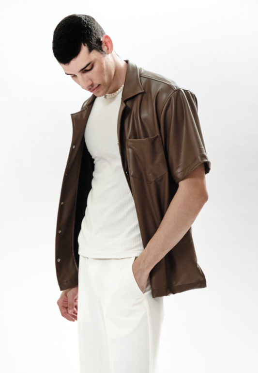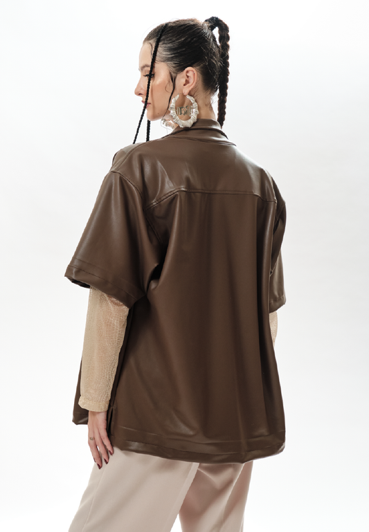 OCWA OVERSIZED JOSE BROWN LEATHER SHIRT