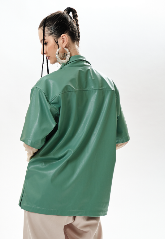 OCWA OVERSIZED JOSE SAGE GREEN LEATHER SHIRT