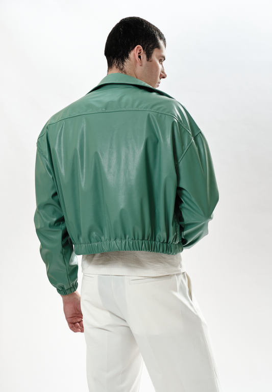 OCWA OVERSIZED MILAN FAUX SAGE GREEN LEATHER JACKET
