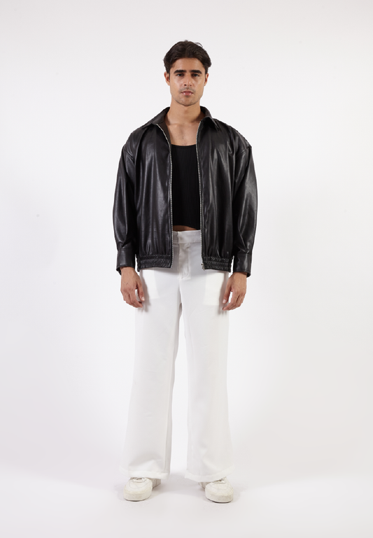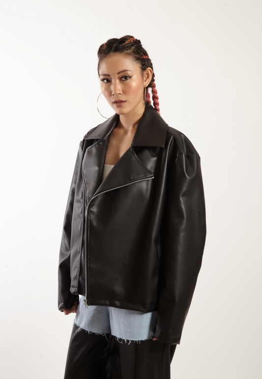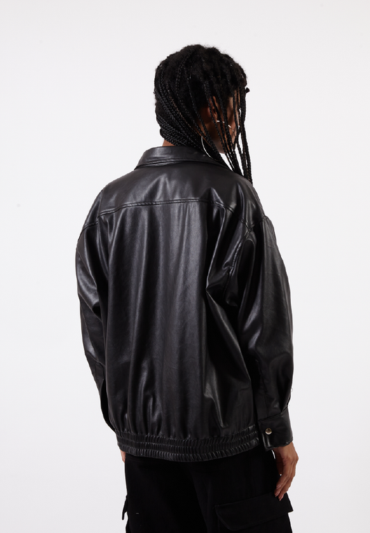 OCWA ROLAND OVERSIZED LEATHER SHIRT BLACK JACKET