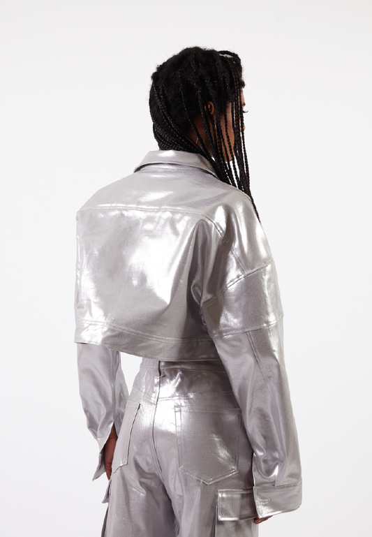 OCWA SKOTCH SILVER CROP DENIM JACKET