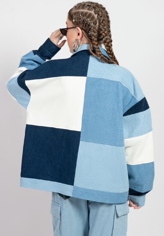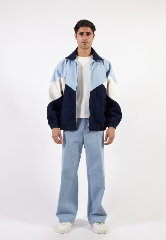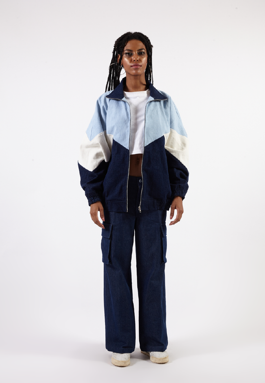 OCWA CHANCE NAVY BLUE WHITE OVERSIZED DENIM JACKET