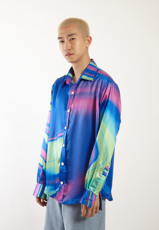 OCWA X NAELS MATES WHIMSICAL LONG SLEEVE SHIRT BLUE GREEN PURPLE