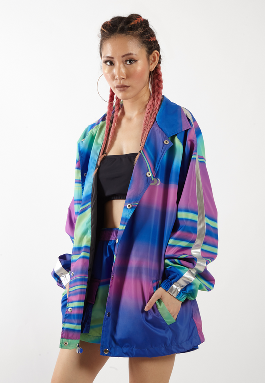 OCWA X NAELS MATES WHIMSICAL COACH JACKET SILVER BLUE GREEN PURPLE