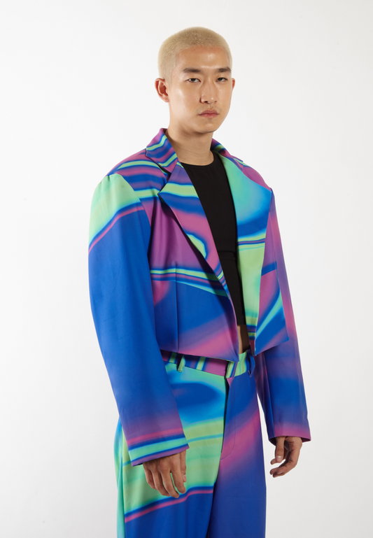 OCWA X NAELS MATES WHIMSICAL CROP OVERSIZED BLAZER BLUE GREEN PURPLE