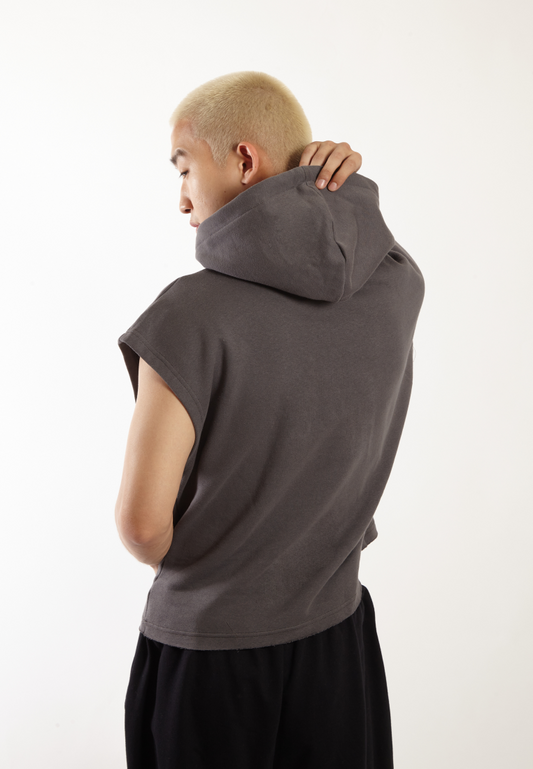 OCWA X VEDECI CONNOR BOXY CROP SLEEVELESS HOODIE ASH GREY