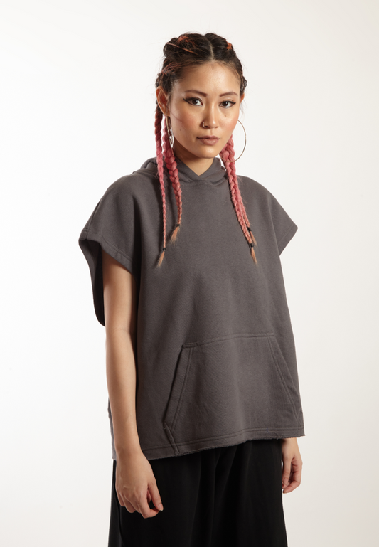 OCWA X VEDECI CONNOR BOXY CROP SLEEVELESS HOODIE MISTY GREY