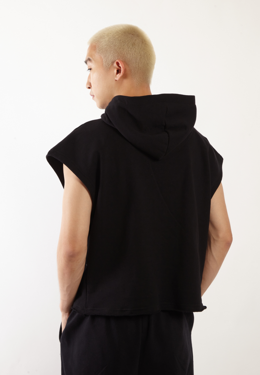OCWA X VEDECI CONNOR BOXY CROP SLEEVELESS HOODIE BLACK