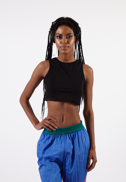 OCWA ZOLA BASIC FITTED CROP BLACK TANK TOP