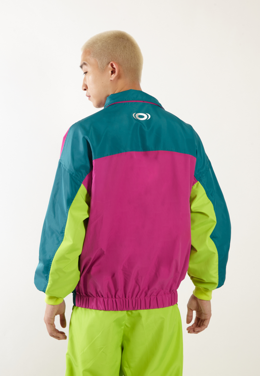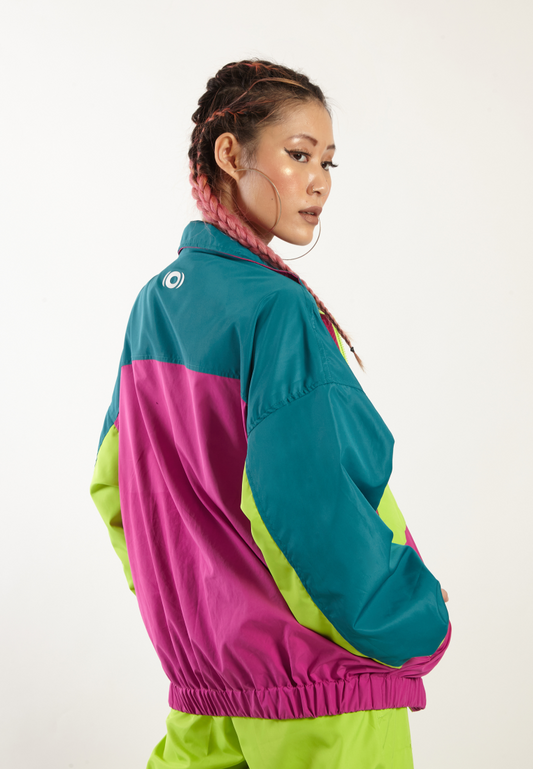 OCWA YUNA COLORBLOCK 80S INSPIRED WATERPROOF SPORTY RUNNING JACKET FUCHSIA PINK NEON GREEN