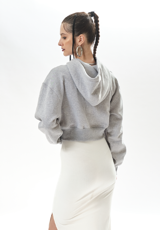OCWA FREJA MISTY GREY CROP ZIPPER HOODIE