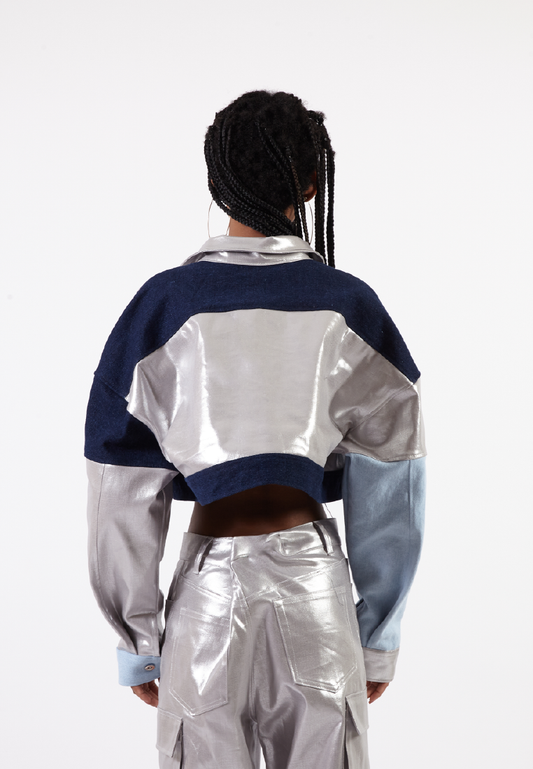 OCWA LEAH BLUE NAVY SILVER CROP DENIM JACKET
