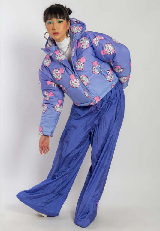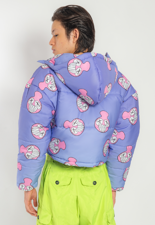 OCWA X REDMILLER SMILEY FACE CROP PUFFER JACKET PURPLE