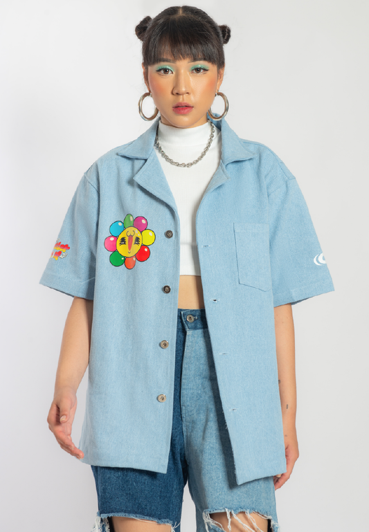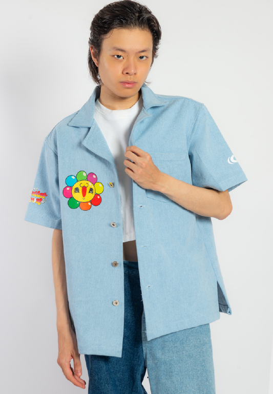 OCWA X REDMILLER FLOWERIA SLEEVELESS DENIM SHIRT BLUE
