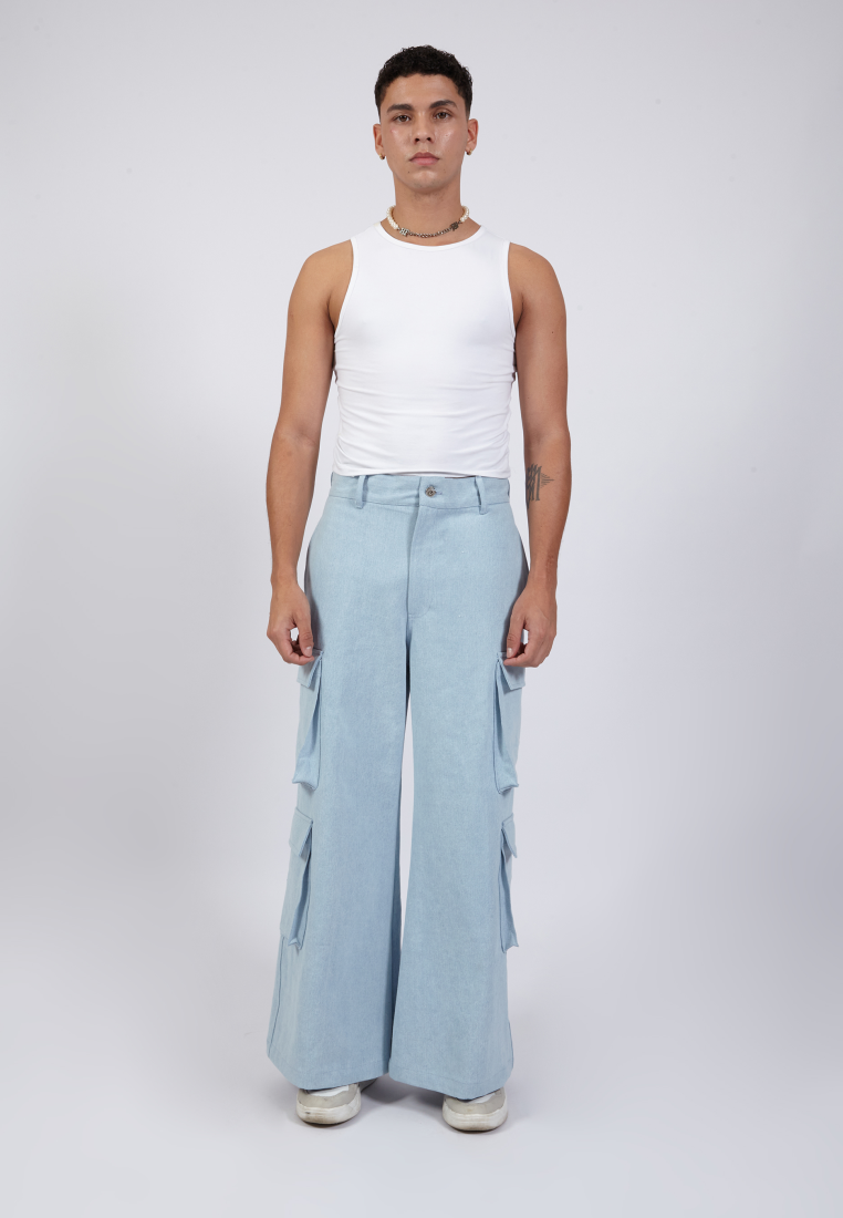 OCWA DIMA WIDELEG FLARE CARGO LIGHT BLUE JEANS DENIM
